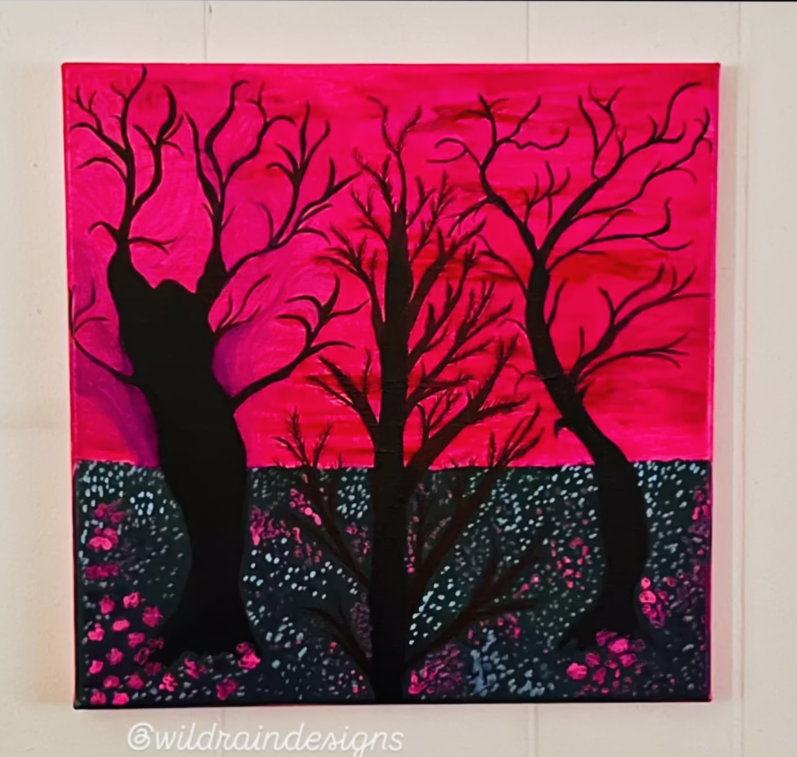 Painted with acrylics on 12” square x 1/2” stretched canvas. Painted on the sides and ready to hang. Signed and sealed for protection.